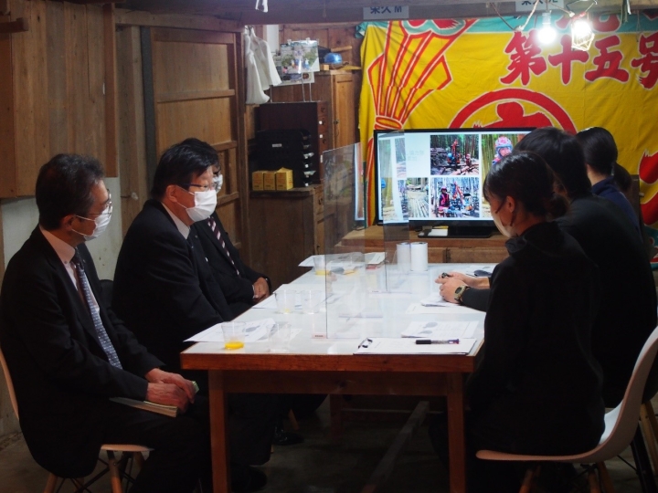 川勝平太知事が県民から政策課題や要望を直接確認する「移動知事室」が2022年10月12日に西伊豆町、13日に松崎町にて行われました。実施テーマは「伊豆の未来を切り拓く魅力の創造に向けた新たな取組」として各視察先を巡る中で当社にもお立ち寄りいただき、丸高農園としての農業事業、丸高ティーティー株式会社としての林業事業の取組と今後の展望についての話と意見交換をさせていただきました。